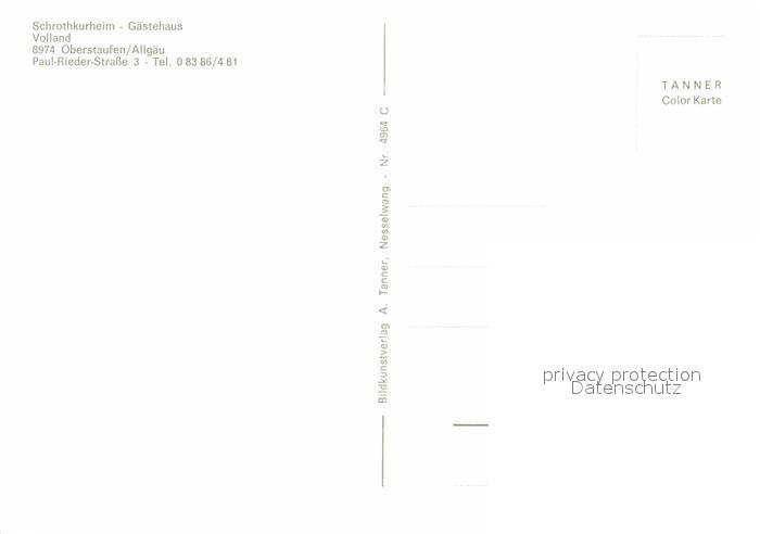 72838412 Oberstaufen Oberallgaeu Bayern Schrothkurheim Gaestheaus Volland postalisch nicht gelaufen Erhaltung siehe scans [WerneD78] KatCode: 11110009780132