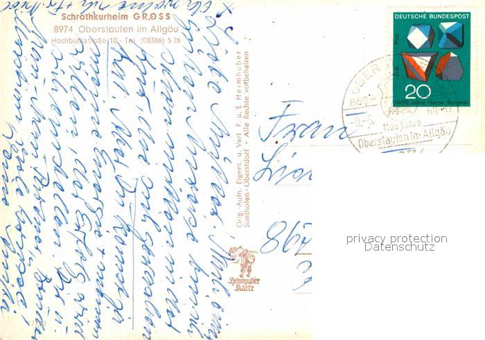 72849106 alte Postkarte Oberstaufen Oberallgaeu Bayern Schrothkurheim postalisch gelaufen Erhaltung siehe scans [AndreD76] KatCode: 11110009780132