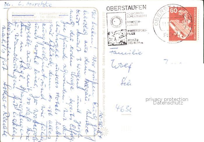 71952468 alte Postkarte Oberstaufen Oberallgaeu Bayern Schrotkur Hotel Alpengasthof Engel postalisch gelaufen Erhaltung siehe scans KatCode: 11110009780132