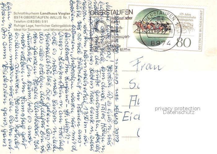 73722538 Oberstaufen Oberallgaeu Bayern Schrotkurheim Landhaus Vogler Aussenansicht postalisch gelaufen Erhaltung siehe scans [LiesaD40] alte Postkarte Lies Katcode 11110009780132