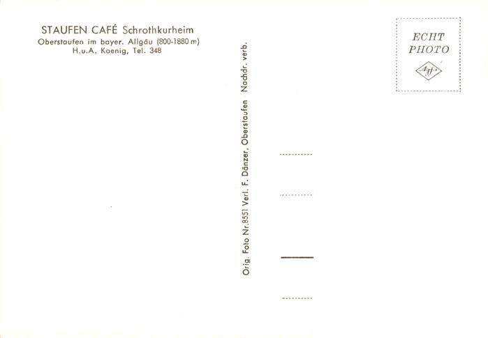 73870709 Oberstaufen Oberallgaeu Bayern Staufen Cafe Schrothkurheim postalisch nicht gelaufen Erhaltung siehe scans [FriedD77] Frie Katcode 11110009780132