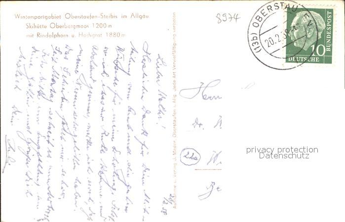 41635000 Oberstaufen Oberallgaeu Bayern Steibis Skihuette Oberbergmoos postalisch gelaufen Erhaltung siehe scans Alte Ansichtskarte Postkarte alte Postkarte Paol Katcode 11110009780132
