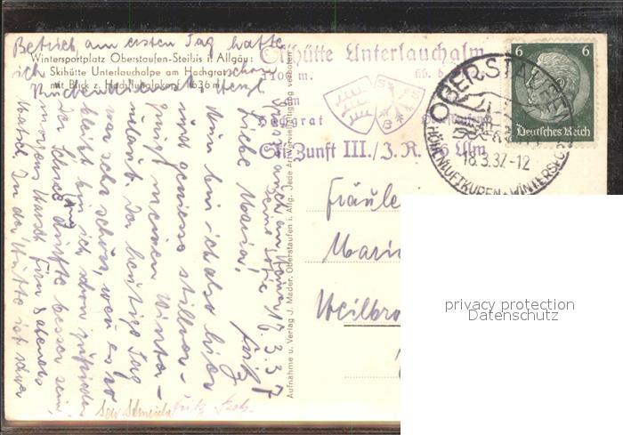 41550870 Oberstaufen Oberallgaeu Bayern Wintersportplatz Hochgrat Skihuette postalisch gelaufen Erhaltung siehe scans Alte Ansichtskarte Postkarte alte Postkarte Stef Katcode 11110009780132