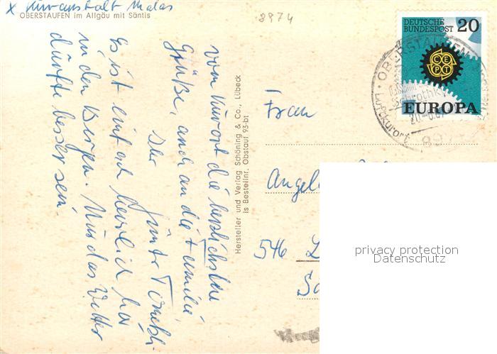 73171368 alte Postkarte Oberstaufen Panorama mit Blick zum Saentis Appenzeller Alpen postalisch gelaufen Erhaltung siehe scans [FriedD77] KatCode: 11110009780132