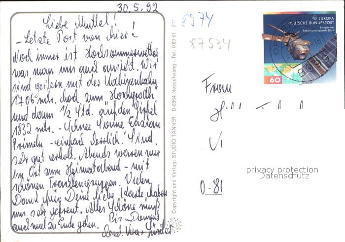 alte Postkarte Oberstaufen Schrothkurort Edelweiss postalisch gelaufen Erhaltung siehe scans
