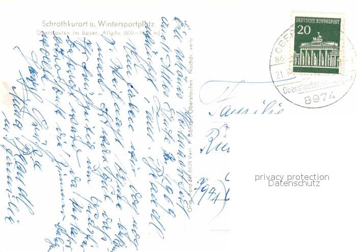 72694674 Oberstaufen Schrotkurort postalisch nicht gelaufen Erhaltung siehe scans [LiesaD40] Lies Katcode 11110009780132