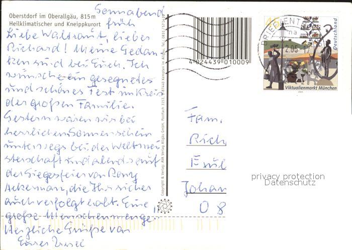 72567537 alte Postkarte Oberstdorf postalisch gelaufen Erhaltung siehe scans [LiesaD40] KatCode: 11110009780133