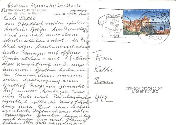 72479924 alte Postkarte Oberstdorf postalisch gelaufen Erhaltung siehe scans KatCode: 11110009780133