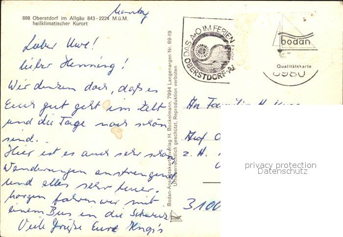 72464908 alte Postkarte Oberstdorf postalisch gelaufen Erhaltung siehe scans KatCode: 11110009780133