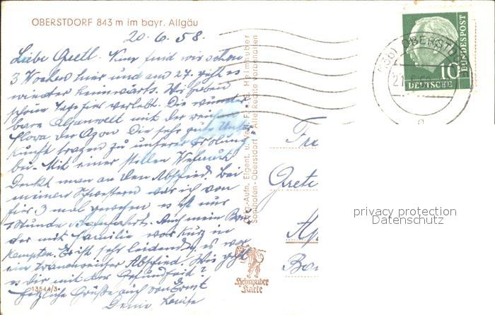 72184026 alte Postkarte Oberstdorf postalisch gelaufen Erhaltung siehe scans KatCode: 11110009780133