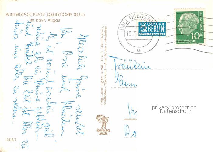 72858806 alte Postkarte Oberstdorf postalisch gelaufen Erhaltung siehe scans [NatalD47] KatCode: 11110009780133