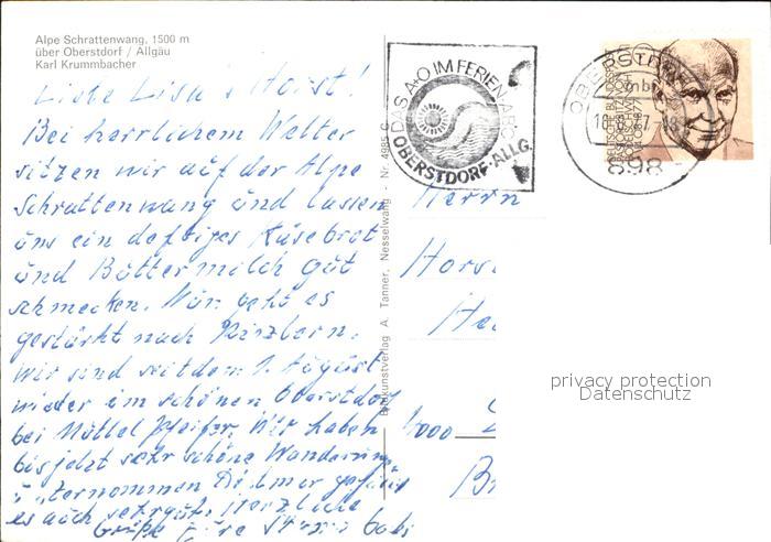 72534079 alte Postkarte Oberstdorf Alpe Schrattenwang Almbauer postalisch gelaufen Erhaltung siehe scans [FriedD77 kt118box] KatCode: 11110009780133