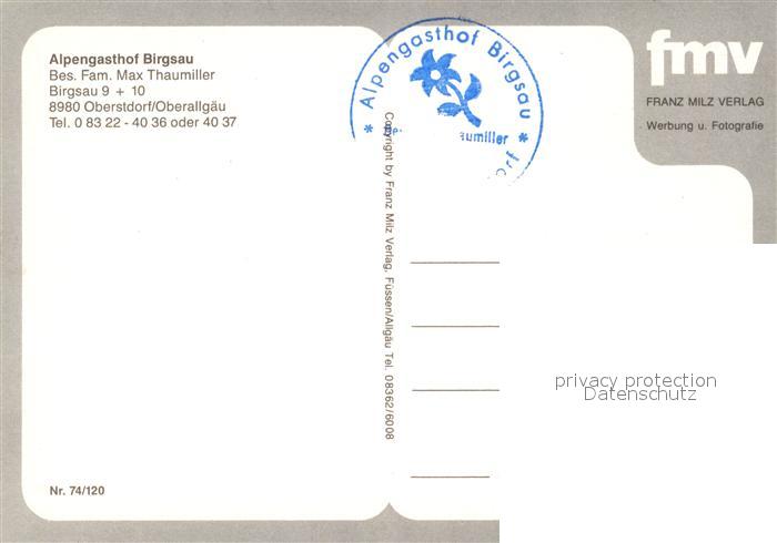 73105732 Oberstdorf Alpengasthof Birgsau postalisch nicht gelaufen Erhaltung siehe scans [KathaD81] KatCode: 11110009780133