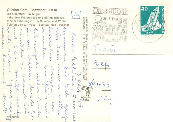 73878400 alte Postkarte Oberstdorf Alpengasthof Schwand Gastraeume Terrasse postalisch gelaufen Erhaltung siehe scans [WerneD78] KatCode: 11110009780133