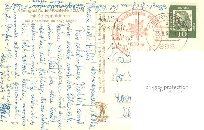 73711535 alte Postkarte Oberstdorf Alpengaststaette Hochleite Aussenansicht postalisch gelaufen Erhaltung siehe scans [LiesaD40] KatCode: 11110009780133
