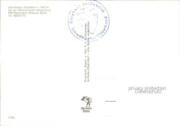 72247925 Oberstdorf Alpenhotel Schoenblick Loellereckbahn postalisch nicht gelaufen Erhaltung siehe scans KatCode: 11110009780133