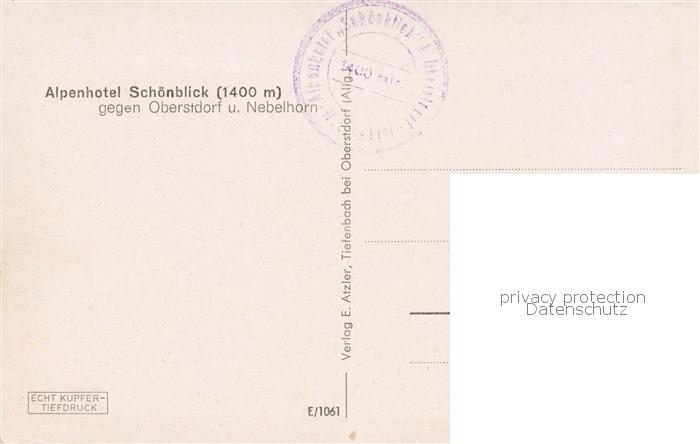 73801458 Oberstdorf Alpenhotel Schoenblick mit Nebelhorn postalisch nicht gelaufen Erhaltung siehe scans [WerneD78] KatCode: 11110009780133