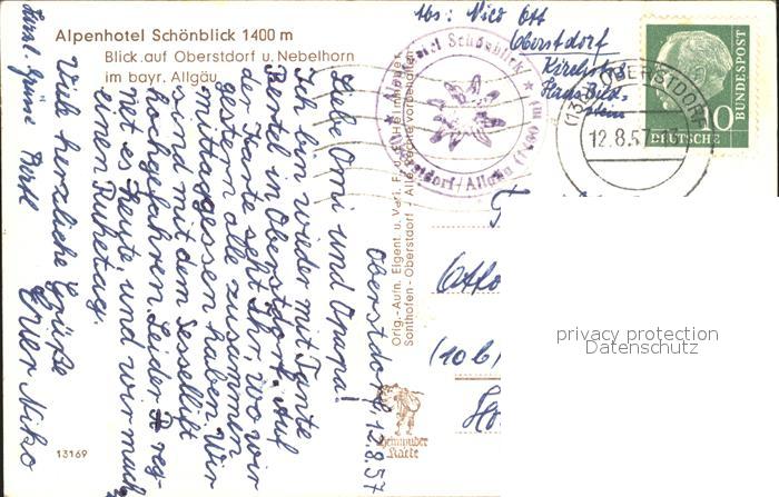 71919209 alte Postkarte Oberstdorf Alpenhotel Schoenblick Nebelhorn postalisch gelaufen Erhaltung siehe scans KatCode: 11110009780133
