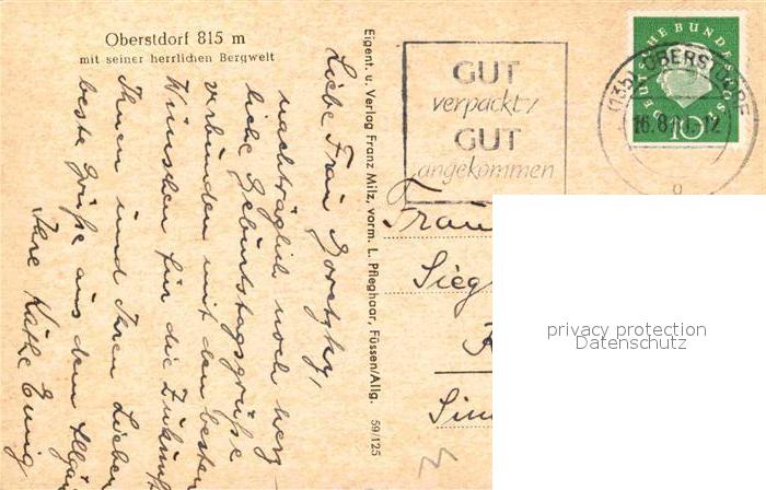 72643800 alte Postkarte Oberstdorf Alpenpanorama postalisch gelaufen Erhaltung siehe scans [FriedD77] KatCode: 11110009780133