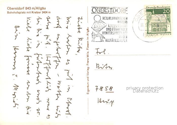 73335147 alte Postkarte Oberstdorf Bahnhofsplatz mit Kratzer postalisch gelaufen Erhaltung siehe scans [WerneD78] KatCode: 11110009780133