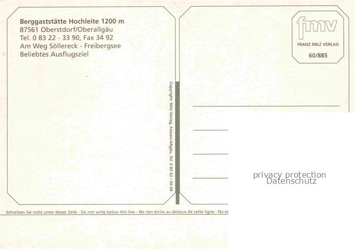 74150713 OBERSTDORF Bayern Berggaststaette Hochleite postalisch nicht gelaufen Erhaltung siehe scans [WerneD78] KatCode: 11110009780133