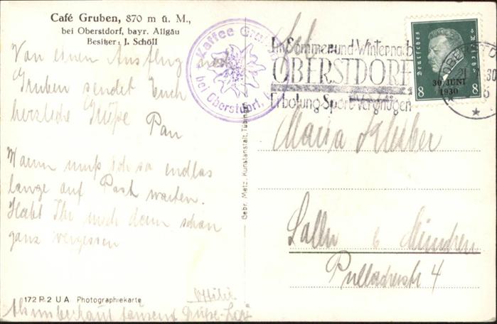 40992917 OBERSTDORF Bayern Cafe Gruben postalisch gelaufen Alte Ansichtskarte Postkarte alte Postkarte Katcode 11110009780133