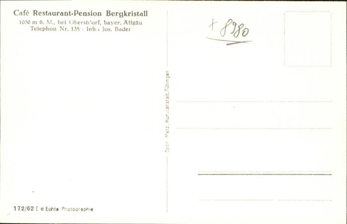 40985022 OBERSTDORF Bayern Cafe Restaurant Bergkristall postalisch nicht gelaufen Alte Ansichtskarte Postkarte Katcode 11110009780133