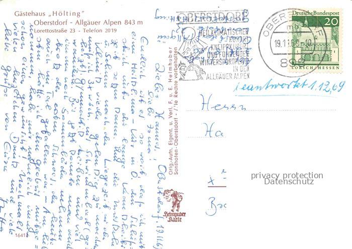 74034644 OBERSTDORF Bayern Gaestehaus Hoelting Allgaeuer Alpen postalisch gelaufen Erhaltung siehe scans [FriedD77] alte Postkarte Frie Katcode 11110009780133