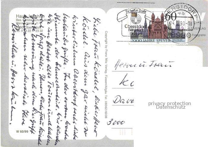 74013736 OBERSTDORF Bayern Gaestehaus Pension Haus Joachim Wintersportplatz Alpen postalisch gelaufen Erhaltung siehe scans [FriedD77] alte Postkarte Frie Katcode 11110009780133