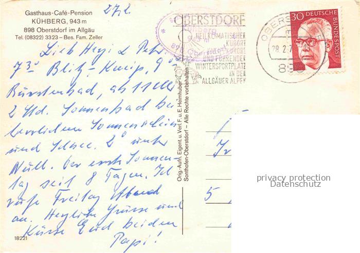 74099493 OBERSTDORF Bayern Gasthaus Kuehberg Cafe Gastraeume postalisch gelaufen Erhaltung siehe scans [WerneD78] alte Postkarte Wern Katcode 11110009780133