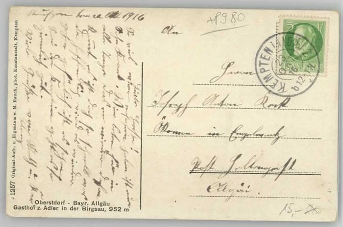 40227372 OBERSTDORF Bayern Gasthof Adler postalisch gelaufen Alte Ansichtskarte Postkarte alte Postkarte Katcode 11110009780133