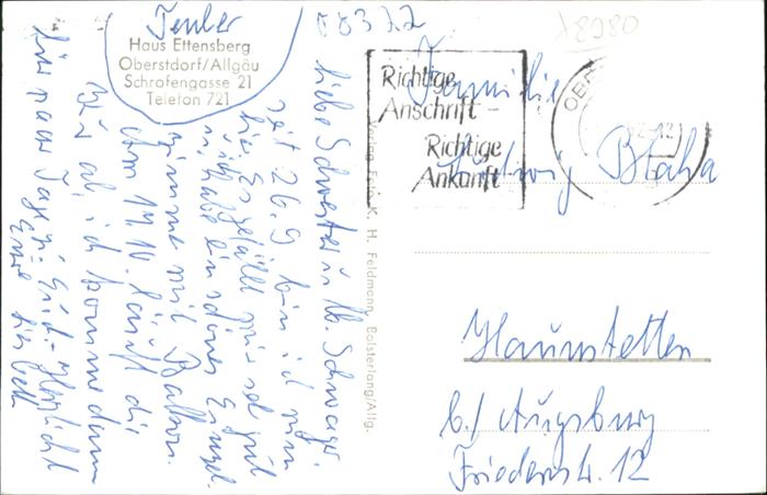 40985076 OBERSTDORF Bayern Haus Ettenberg postalisch gelaufen Alte Ansichtskarte Postkarte alte Postkarte Katcode 11110009780133