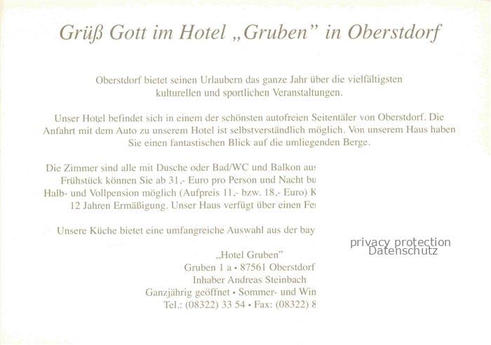 74043990 OBERSTDORF Bayern Hotel Gruben postalisch nicht gelaufen Werbekarte (keine Postkarte) Erhaltung siehe scans [WerneD78] Werbekarte (keine Postkarte) Wern Katcode 11110009780133