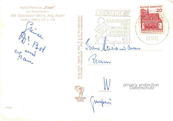 74016913 OBERSTDORF Bayern Hotel Pension Filser postalisch gelaufen Erhaltung siehe scans [WerneD78] alte Postkarte Wern Katcode 11110009780133
