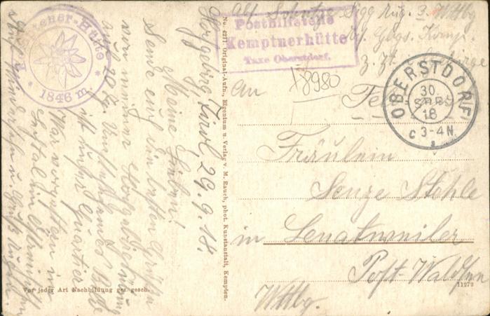 40985084 OBERSTDORF Bayern Kemptnerhuette postalisch gelaufen Alte Ansichtskarte Postkarte alte Postkarte Katcode 11110009780133