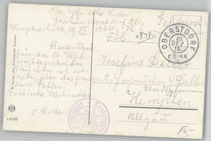40228114 OBERSTDORF Bayern Kemptnerhuette Feldpost postalisch gelaufen Alte Ansichtskarte Postkarte alte Postkarte Katcode 11110009780133