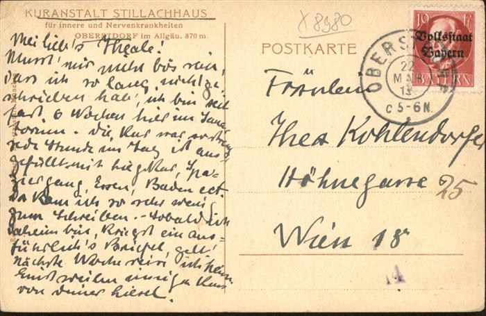 40985074 OBERSTDORF Bayern Kuranstalt Stillachhaus postalisch gelaufen Alte Ansichtskarte Postkarte alte Postkarte Katcode 11110009780133