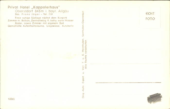41256615 OBERSTDORF Bayern Privat Hotel Kappelerhaus postalisch nicht gelaufen gute Erhaltung Alte Ansichtskarte Postkarte hz_A Katcode 11110009780133
