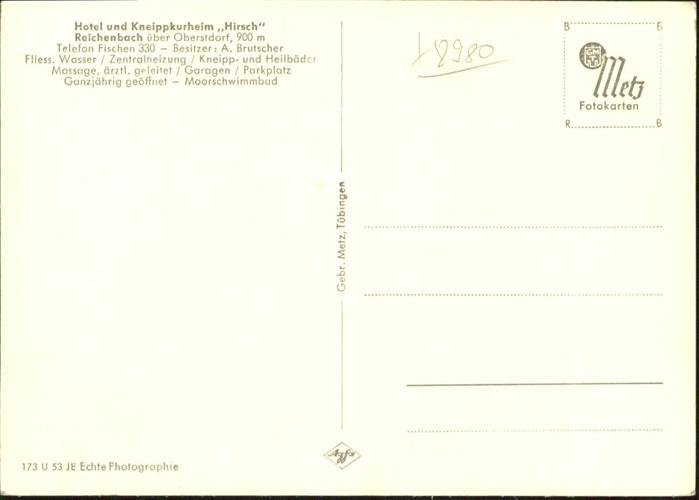 40985482 OBERSTDORF Bayern Reichenbach Kneippkurheim Hirsch postalisch nicht gelaufen Alte Ansichtskarte Postkarte Katcode 11110009780133