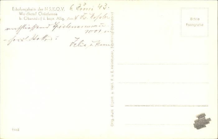 41256520 OBERSTDORF Bayern Waldhotel Christlessee postalisch nicht gelaufen gute Erhaltung Alte Ansichtskarte Postkarte hz_A Katcode 11110009780133