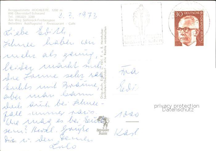 71845310 alte Postkarte Oberstdorf Berggasstaette Hochleite postalisch gelaufen Erhaltung siehe scans KatCode: 11110009780133