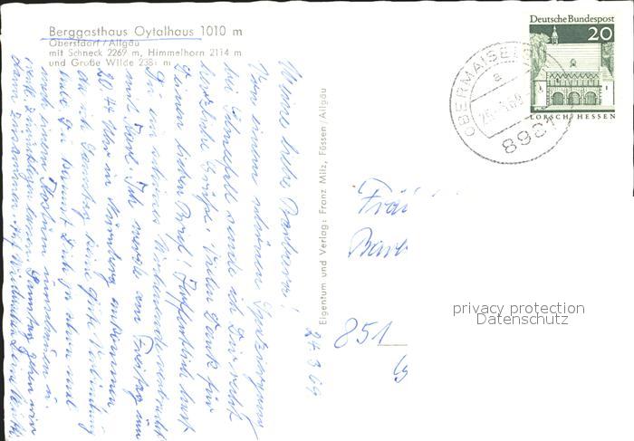 72084039 alte Postkarte Oberstdorf Berggasthaus Oytalhaus Schneck Himmelhorn Grosse Wilde postalisch gelaufen Erhaltung siehe scans KatCode: 11110009780133