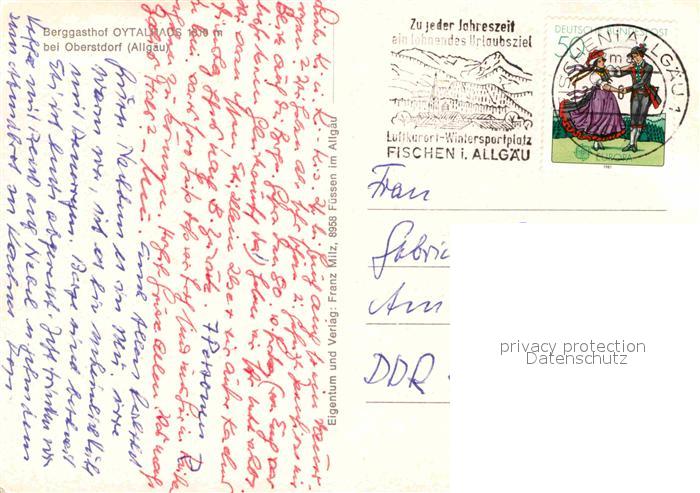 72648887 alte Postkarte Oberstdorf Berggasthof Oytal postalisch gelaufen Erhaltung siehe scans [LiesaD40] KatCode: 11110009780133