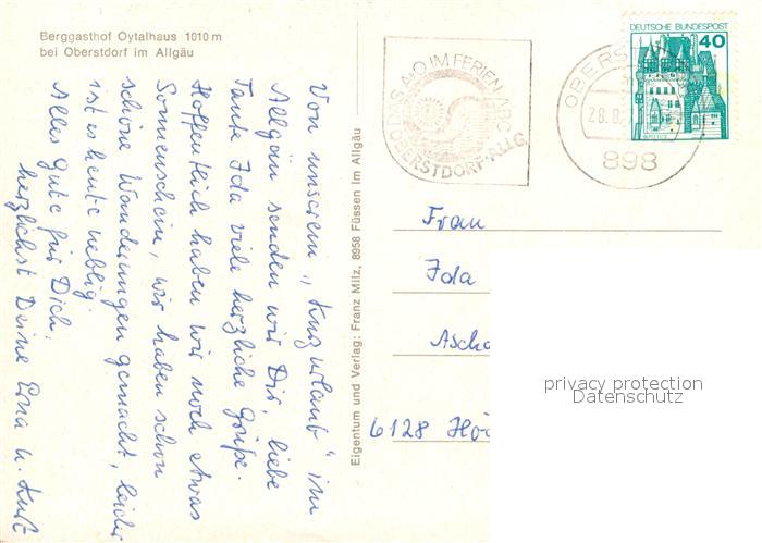 72999708 alte Postkarte Oberstdorf Berggasthof Oytalhaus postalisch gelaufen Erhaltung siehe scans [AndreD76] KatCode: 11110009780133