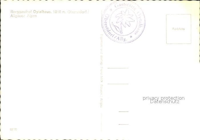 72478725 Oberstdorf Berggasthof Oytalhaus postalisch nicht gelaufen Erhaltung siehe scans KatCode: 11110009780133