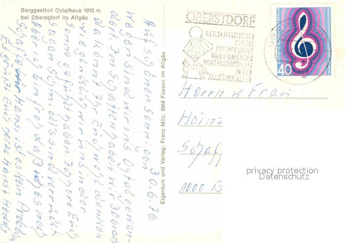 72835089 alte Postkarte Oberstdorf Berggasthof Oytalhaus Allgaeuer Alpen postalisch gelaufen Erhaltung siehe scans [FriedD77] KatCode: 11110009780133