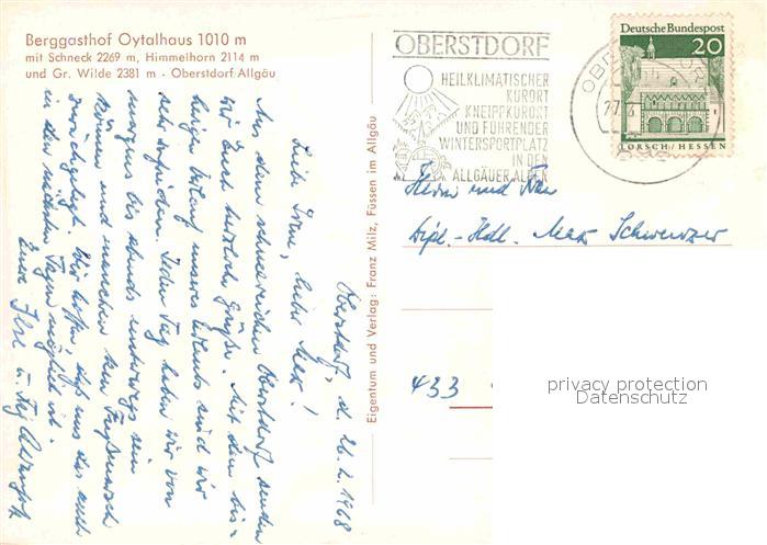 72846137 alte Postkarte Oberstdorf Berggasthof Oytalhaus mit Schneck Himmelhorn Grosse Wilde Winterpanorama Allgaeuer Alpen postalisch gelaufen Erhaltung siehe scans [FriedD77] KatCode: 11110009780133