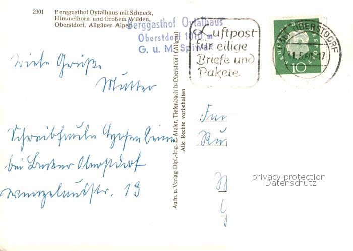 72755343 alte Postkarte Oberstdorf Berggasthof Oytalhaus mit Schneck Himmelhorn Grosser Wilder Allgaeuer Alpen postalisch gelaufen Erhaltung siehe scans [FriedD77] KatCode: 11110009780133