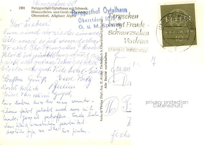73070277 alte Postkarte Oberstdorf Berggasthof Oytalhaus Schneck Himmelhorn postalisch gelaufen Erhaltung siehe scans [NatalD47] KatCode: 11110009780133