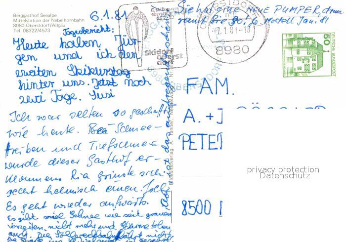 72865169 alte Postkarte Oberstdorf Berggasthof Seealpe postalisch gelaufen Erhaltung siehe scans [LiesaD40] KatCode: 11110009780133